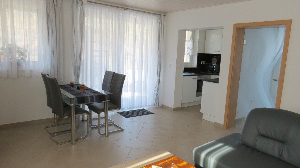 Die Wohnung verfügt über Wohn- Esszimmer mit Doppelschlafcouch, Doppelschlafzimmer, Dusche/WC, Küche und Garderobe.